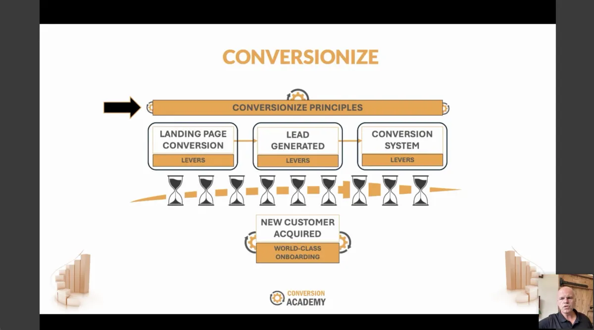 It's the BIGGEST leverage point in almost every business... CONVERTING traffic and leads into sales and because of that, it's an area we've specialised in. This is a process and science we've called 'CONVERSIONIZE' - how you systematically transform your lead generation and sales system into a conversion MACHINE.