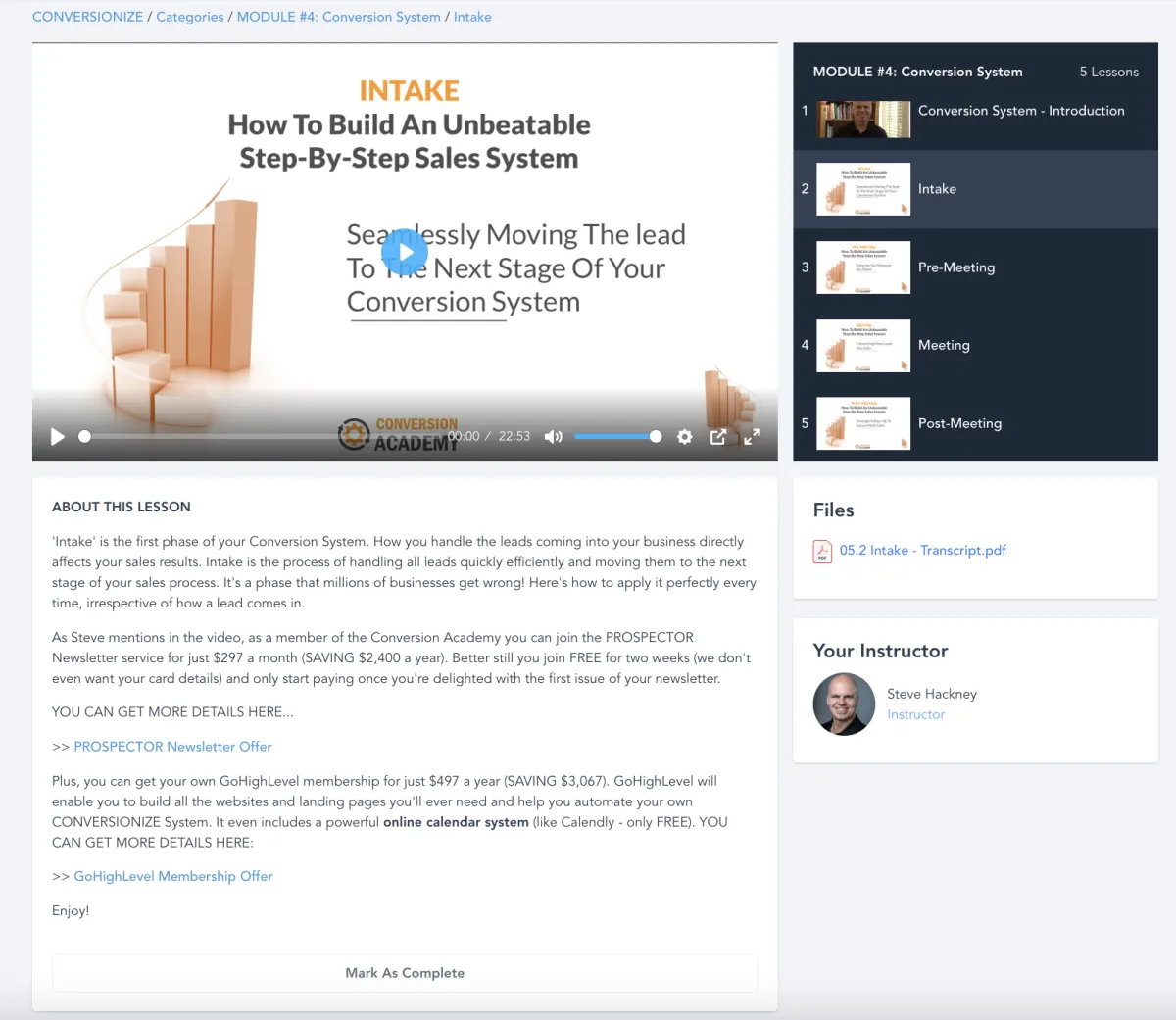 The Conversion Academy is set up in a user friendly way and is very easy to navigate.
