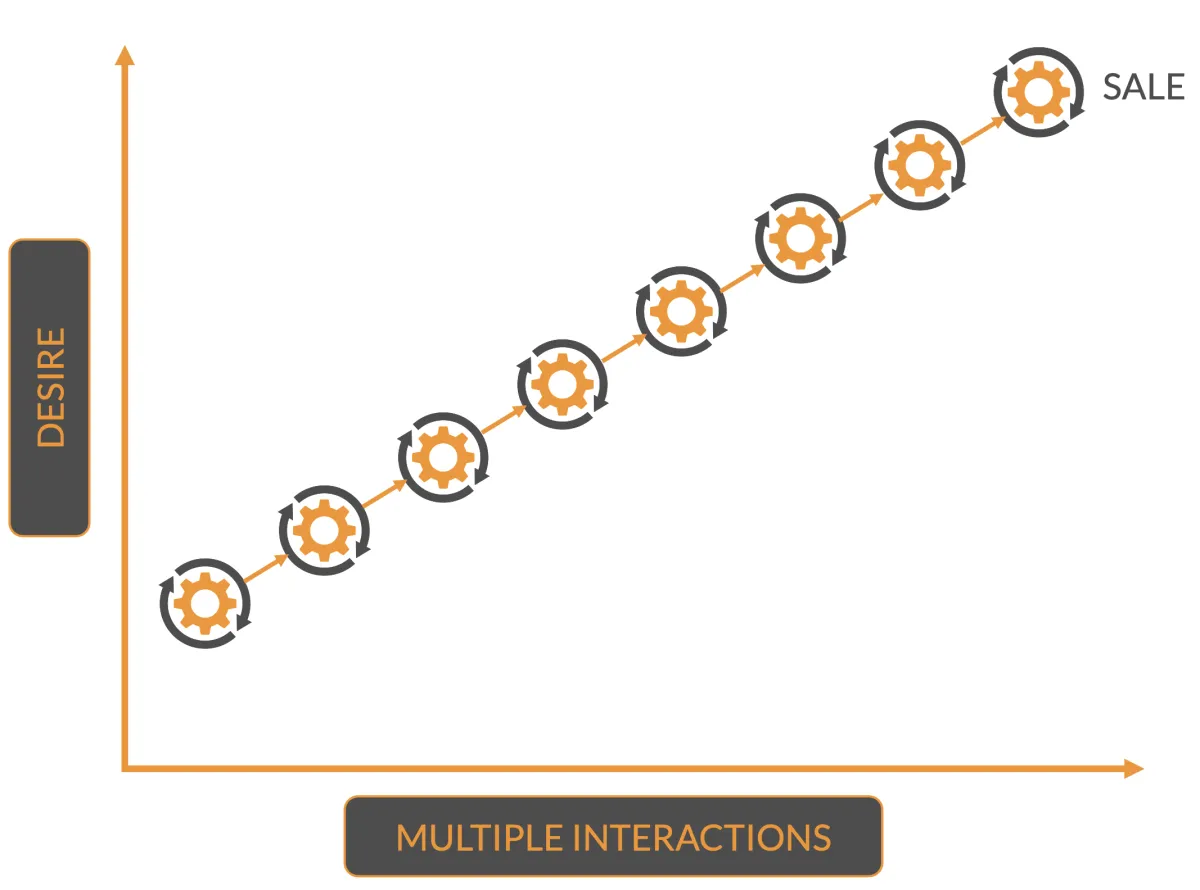 Every interaction a prospect has with your business will influence them either positively or negatively. If the interaction is good (increasing desire) then the prospect will move closer to the sale. A poor interaction (decreasing desire) will move the prospect further away.